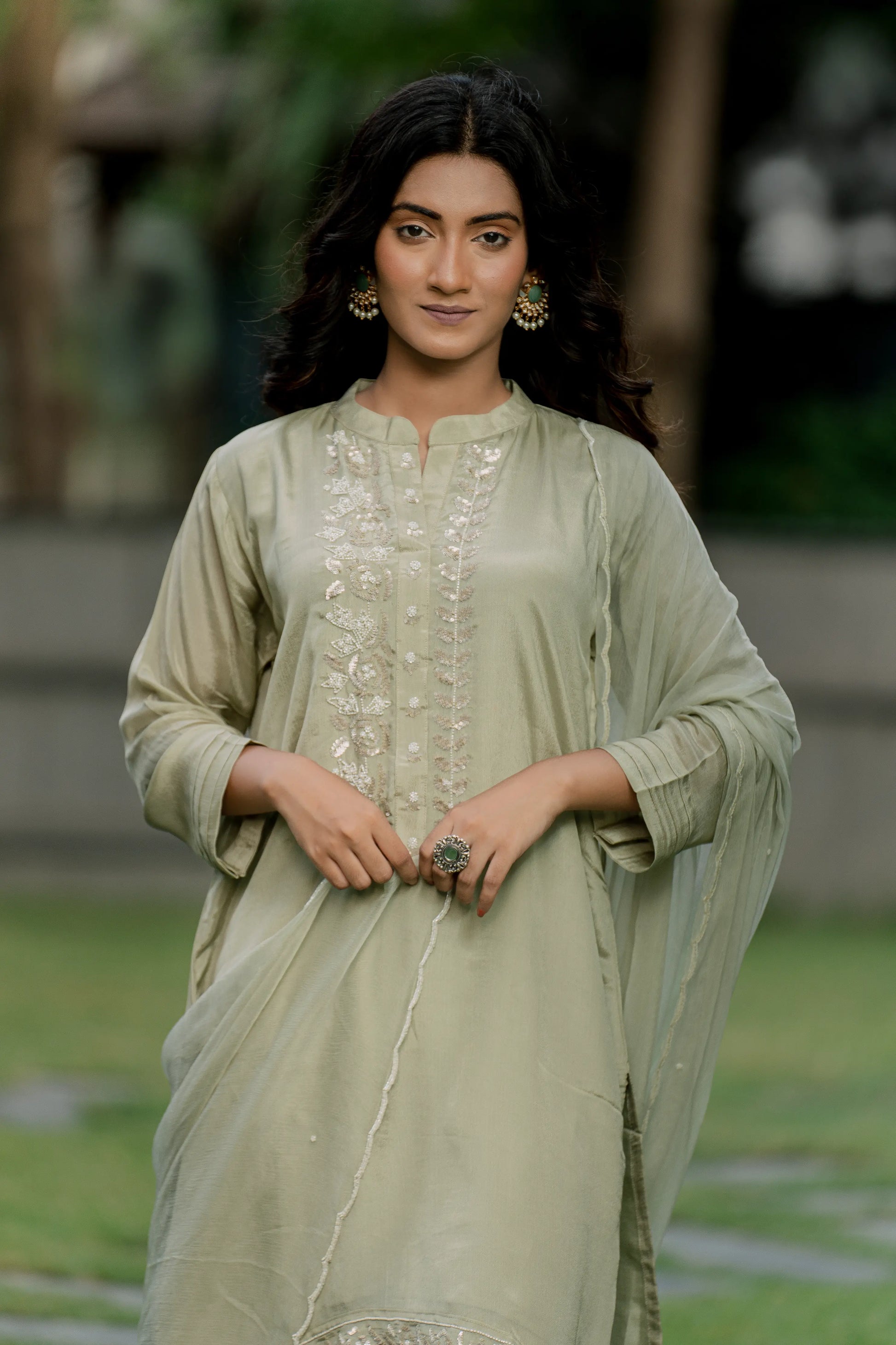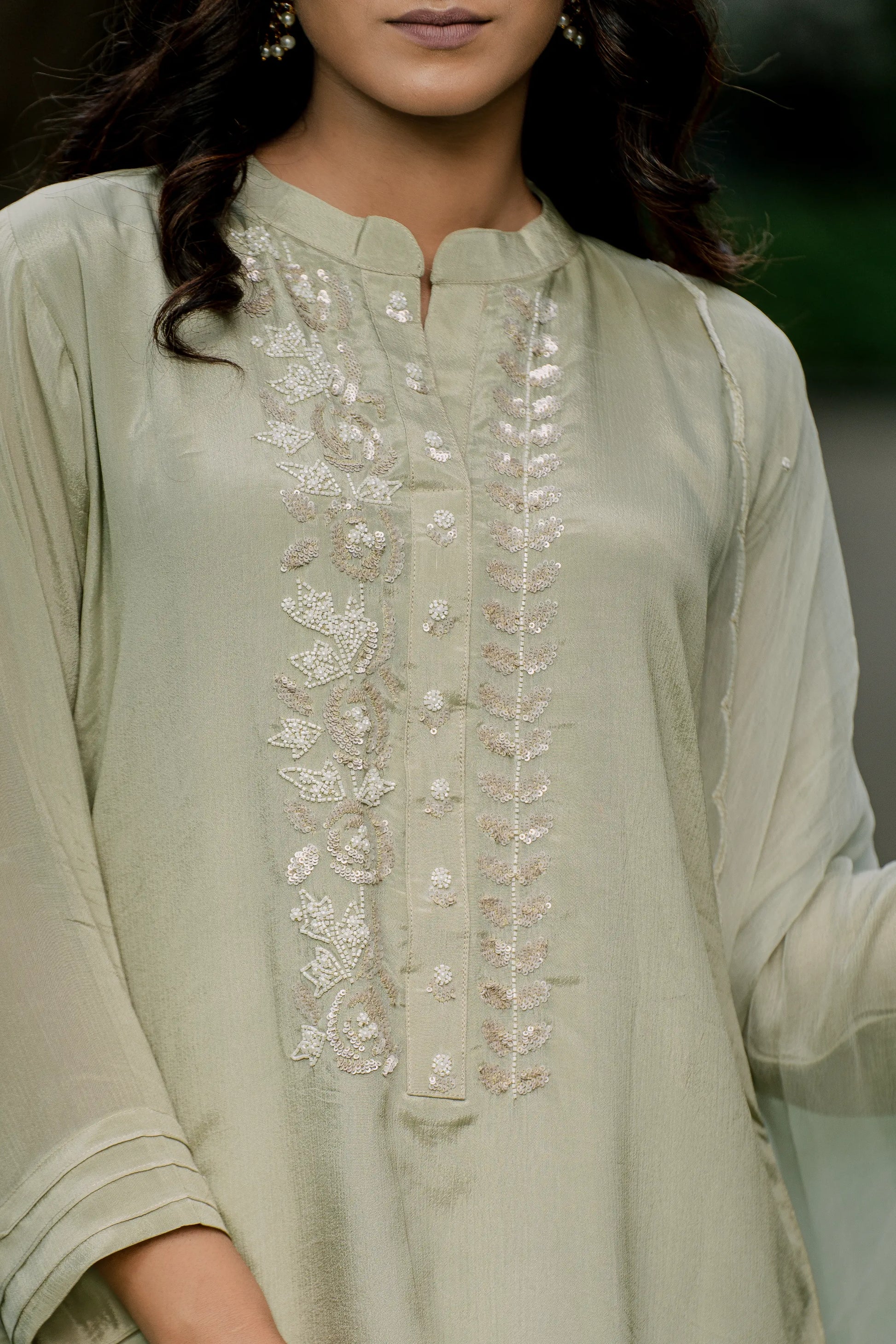 Olive Mist - Top with Palazzo Pant and Dupatta